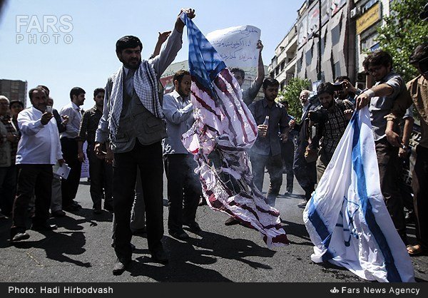 در پایان این راهپیمایی همچنین پرچم آمریکا و رژیم صهیونیستی به آتش کشیده شد.