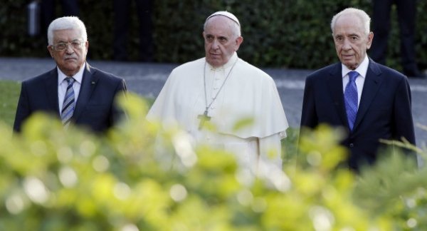 پاپ فرانسیس به همراه محمود عباس، رهبر تشکیلات خودگردان فلسطین و شیمون پرز، رئیس جمهور اسرائیل در ملاقاتی کمسابقه در باغی در واتیکان برای صلح در خاورمیانه دعا خواندند.