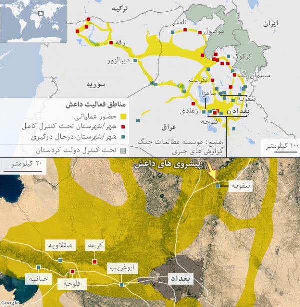 نیروهای داعش شب گذشته بخشهایی از شهر بعقوبه، مرکز استان دیاله را تصرف کردند که تنها ۶۰ کیلومتر با بغداد فاصله دارد، اما مقامات عراقی میگویند که کنترل شهر را دوباره به دست گرفتهاند.