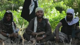 یکی از آنها که شناسایی شده، ابو دجانه الهندی، تبعه بریتانیا است که در این ویدئو میگوید "برای برادرانی که کنار ایستادهاند پیامی دارد."