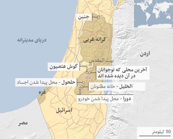 این سه نفر آخرین بار در تقاطعی نزدیکی الخلیل در حال بازگشت به خانه دیده شده بودند.