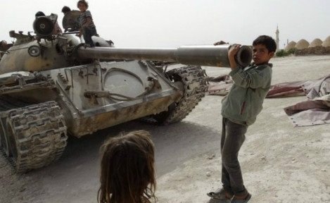 تانک ها به جای اسباب بازی ها. برای بچه های سوریه زمین بازی باقی نمانده