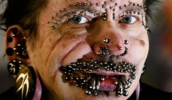 به گزارش آسوشیتدپرس، نام رولف بوکهولتس آلمانی – به خاطر داشتن رکورد ۴۵۳ مورد سوراخکاری در بدن برای نصب زیورآلات فلزی که بیشتر آنها هم در صورت او انجام گرفته، در کتاب رکوردهای جهانی گینس ثبت شده است.