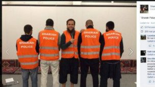 بر پشت جلیقههای این افراد عبارت "پلیس شریعت" (shariah police) نوشته شده بود. آنها چندین بار در خیابانها گشت زدند و به شهروندان توصیه کردند که از خوردن الکل، بازی قمار، تماشای فیلمهای پورنوگرافی و استفاده از مواد مخدر خودداری کنند.