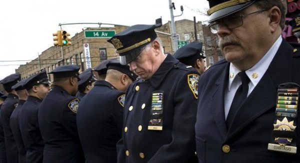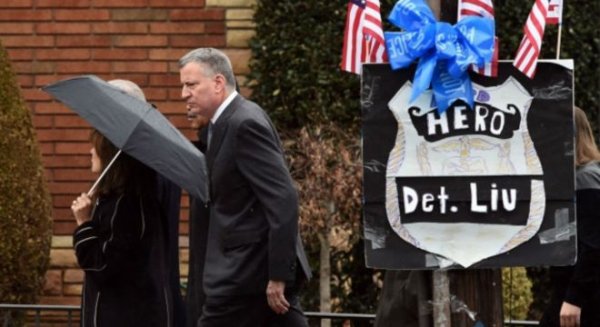 بیل براتون رئیس پلیس نیویورک افسران را ترغیب کرده است از "بی احترامی بیشتر" نسبت به شهردار خودداری کنند و گفته است که "مراسم تدفین یک قهرمان جای سوگواری است نه دادخواهی."