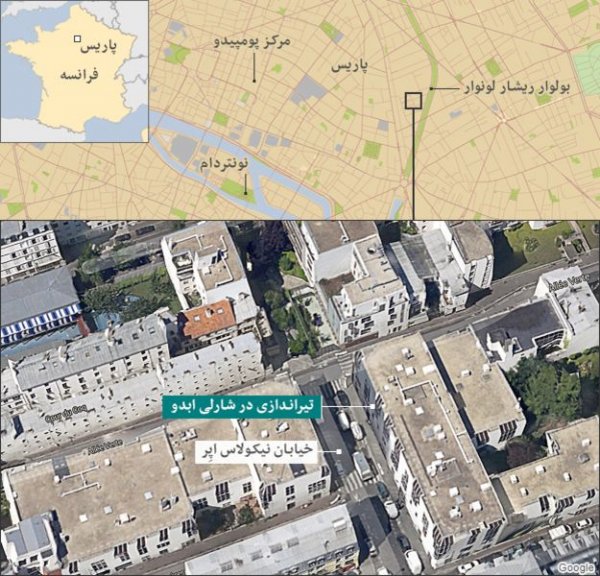 مهاجمان پس از حمله به دفتر مجله و قبل از آن که با یک خودرو از محل فرار کنند، در خیابان به تبادل آتش با پلیس پرداختند.