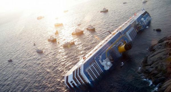 نمایی از کشتی واژگون شدهی کوستا کونکوردیا