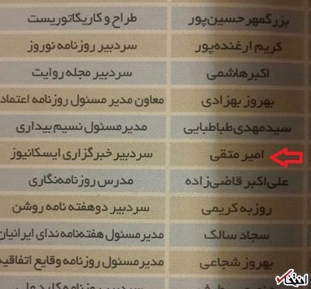 تصویر زیر ، که مربوط به نشریه «مهرنامه» است، نام این فرد به عنوان سردبیر ذکر شده است: