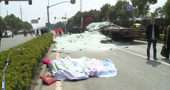 به گزارش پلیس چین در شانگهای خالی شدن حجم بزرگی از شیشه در یکی از بزرگراههای شهر شانگهای منجر به مرگ سه تن شد.
