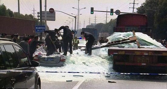 بنا بر این گزارش این کامیون حاوی بیش از 20 تن شیشه در ضخامت های مختلف درکنار دیگر خودرو های سواری و باری دیگر  در بزرگراه ژوافنگ در شانگهای چین حال حرکت بود.