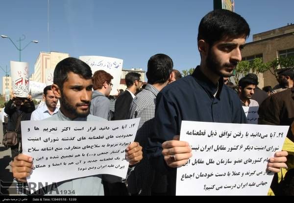 همزمان با این جلسه نیز گروهی از مخالفان توافق لوزان با در دست داشتن پلاکاردهایی در مقابل ساختمان مجلس شورای اسلامی در بهارستان حاضر شدند .