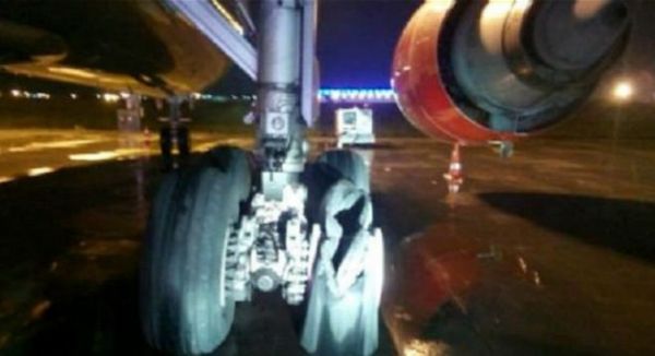 چرخ سمت راست هواپیما هم در این حادثه آسیب دیده، اما خلبان موفق شده هوپیما را متوقف کند.