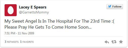 این مادر ۲۷ ساله مدتی بود که در وبلاگ خود به نام Garnett’s Journey و نیز در شبکههای اجتماعی، در مورد بیماری فرزند خود مینوشت، عواطف مردم را برمیانگیخت و جلب توجه میکرد.مثلا با توییتهایی مثل این: