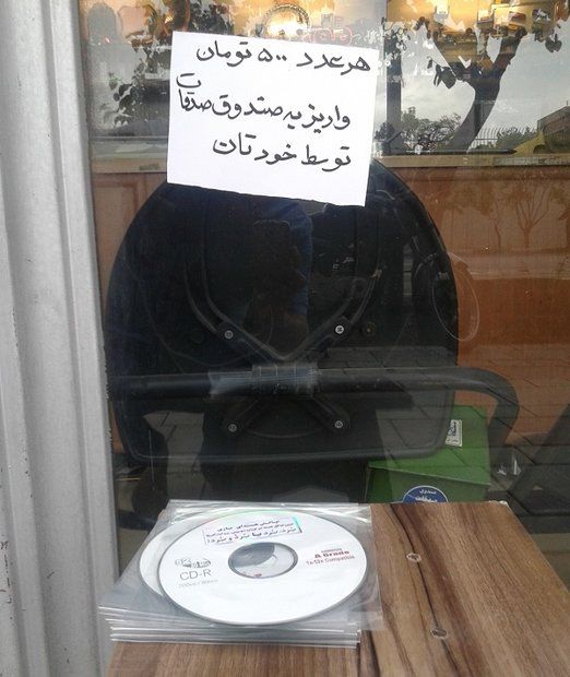 ولی کاش چندین پانصد تومانی می گذاشت جلوی مغاز ه ِ خود خیرات می کرد و می گفت : سی دی ها را هم هر یک نفری بریزد داخل ِ صندوق ِ صدقات !