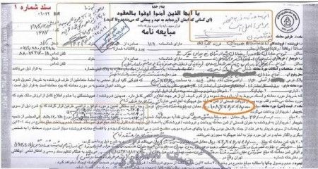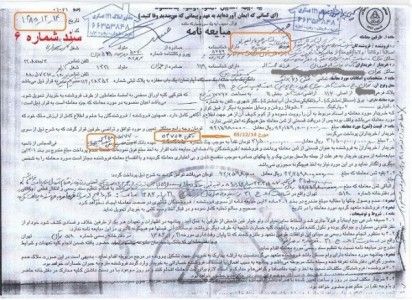 ۲٫۲- پس از کش و قوسهای فراوان و طرح این پرسش که متهمین، زمین ۱۱ میلیارد تومانی را با کدام سند و مدرکی که دلالت بر مالکیت آقای بفات اله صوفیان دارد خریداری کرده اند، سرانجام آقایان کوهکن، ندیمی و برزگر؛ مبایعه نامه شماره ۶۰۷۱ را که درآن تاریخ ۱۳۸۵/۱۱/۱۹ قید شده است را ارائه دادند!(سند شماره ۵)