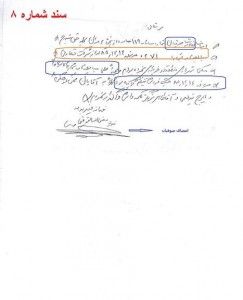 ۲٫۶- سند شماره ۷ و ۸ که توسط آقای صوفیان و درحضور شهود ارائه شده نیز به صراحت بیانگر این واقعیت است که بهاصطلاح مبایعه نامه شماره ۶۰۷۱ هم درتاریخ ۱۴ اسفند ۸۵ و همزمان با مبایعه نامه شماره ۶۰۷۲ مورخ ۱۴ اسفند ۸۵(سند شماره ۱) تهیه و تنظیم شده است!