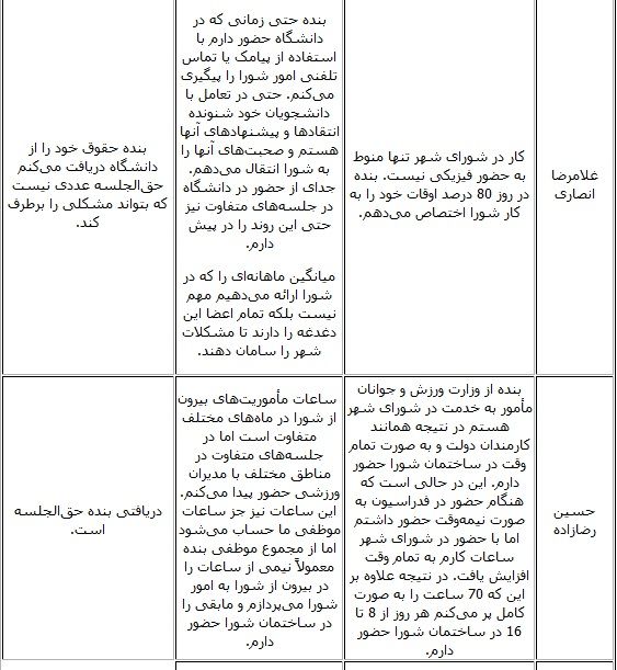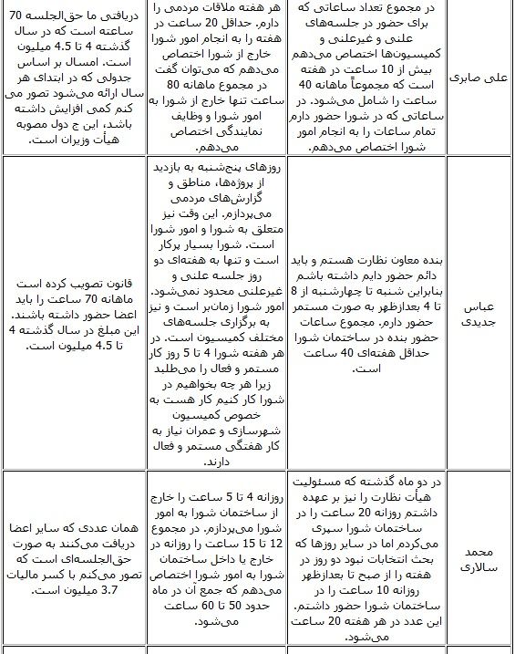 حقوق و مزایای مذکور ناچیز است .مداخل شان زیاد است.چنانچه اگر درامدشان فقط همان حقوق مزایا باشد یک ساعت هم در شورای شهر دوام نخواهند اورد