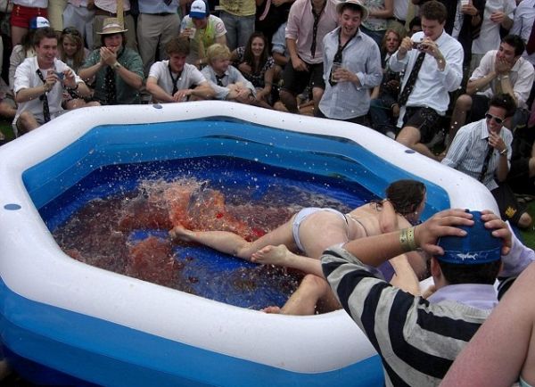 “جنتلمن ویورنز” از نزدیک به نه دههی قبل، هر سال در اولین یکشنبه بعد از پایان امتحانات ترم بهار، یک مهمانی با عنوان “یکشنبه خودکشی” برگزار میکند که یکی از قسمتهای سنتی آن، برگزاری رقابت “کشتی در ژله” است. در این رقابت، دانشجویان دختر بیکینیپوش در داخل یک استخر بادی که با ژله پر شده، با هم کشتی میگیرند.
