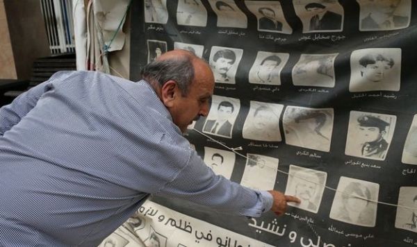 علی عبودهن به عکس یکی از زندانیان مفقودالاثر تدمر اشاره میکندیک شب یکی از نگهبانهای بالای سقف شیشهای به او دستور داده بود تمام دمپاییهای بند را که صد جفتی می شد، در تمام طول شب فقط با دهان جابجا کند.
