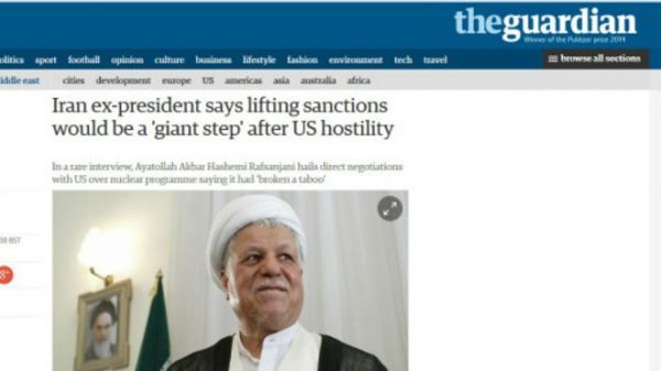 اکبر هاشمی رفسنجانی بازگشایی سفارت آمریکا را غیرممکن ندانسته استاکبر هاشمی رفسنجانی، رئیس مجمع تشخیص مصلحت نظام و رئیس جمهور پیشین ایران گفته است که بازگشایی سفارت ایالات متحده در تهران، غیر ممکن نیست و "به رفتار طرفین بستگی دارد."آقای هاشمی رفسنجانی در مصاحبه ای با خبرنگار روزنامه گاردین که به تهران سفر کرده، گفته است که در مذاکرات جاری اتمی، تابوی مذاکره مستقیم با آمریکا را "شکستیم" و رفع تحریم ها هم گام بزرگی برای پایان دهه ها خصومت میان دو کشور است.
