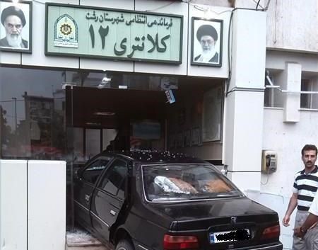 راننده یک دستگاه پژو سوار بر خودرو با سرعت زیاد و شکستن شیشه های ورودی وارد کلانتری 12 شهر رشت شد.به گزارش واحد اطلاع رسانی پلیس گیلان ، سرهنگ محمدرضا جعفری خیرخواه معاون اجتماعی فرماندهی انتظامی گیلان گفت: مقارن ساعت 12 و 15 دقیقه امروز یکشنبه، یک دستگاه خودروی پژو پارس که در کنار خیابان پارک بود، به ناگاه با سرعت زیاد بعد از اینکه نزدیک بود عابری را زیر بگیرد، وارد کلانتری 12 شهرستان رشت شده و همه شیشه های ورودی کلانتری را می شکند.