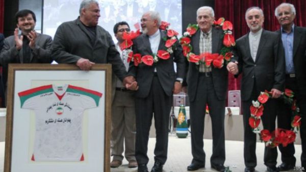 اهدای پیراهن 'پهلوان هسته‌ای' به ظریف