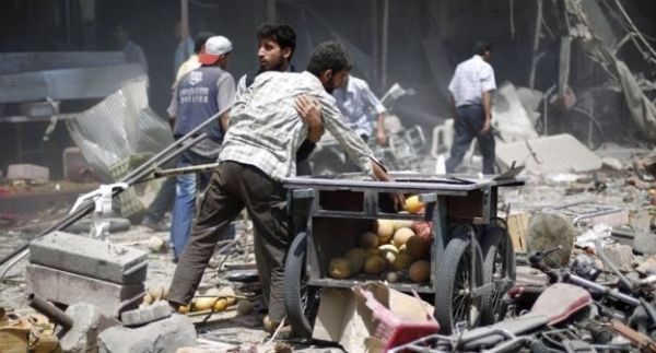 گروه دیده بان حقوق بشر سوریه - مستقر در بریتانیا - که بر مناقشه نظارت داد گفت که در حمله نیروی هوایی به دوما در روز یکشنبه، حداقل ۱۰ راکت به بازار مرکزی شهر شلیک شده است و بعد از فرارسیدن نیروهای امدادی دوباره حمله صورت گرفته است.