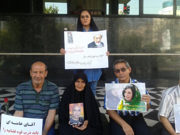 تقاطع: شماری از فعالان سیاسی و حقوق بشر، و خانوادههای زندانیان و جانباختگان سیاسی، صبح روز دوشنبه (۲۶ مرداد-۱۷ آگست) برای ششمین هفتهی پیاپی در مقابل ساختمان لاستیک “دنا” در میدان ونک تهران، تحصن کردند.علت انتخاب ساختمان لاستیک “دنا” از سوی تحصنکنندگان، تعلق آن به محمد یزدی، رییس کنونی “مجلس خبرگان” و رییس اسبق قوه قضاییه جمهوری اسلامی است.