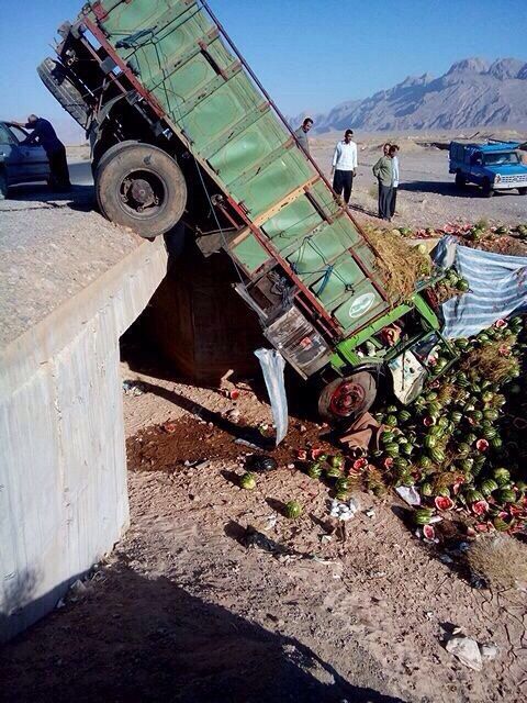 " قبول باشه حاجی" - صحنه واژگون شدن کامیون با بار هندوانه از روی پل و بعد از آن..