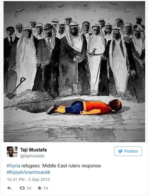 این بچه بی گناه به همراه خانوادش باید جنازش از ساحل به خاکش برگرده و گناهش فقط این بوده که میخواسته زنده بمونه،اونوقت آل سعود کثیف وخاندان حرامیشون با پولهای توالتی که اسمش مکه است ومیلیونها احمق میلیونها دلار پول بی زبونو میریزن توی خیک این حرومیها که بروند سواحل کشورهای اروپا یی عشق وحال کنن۰