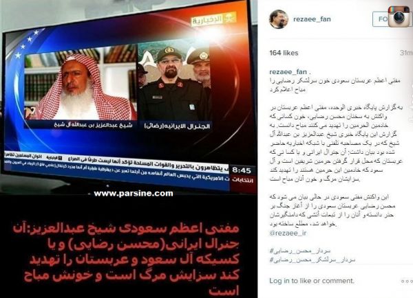 مفتی اعظم عربستان سعودی خون محسن رضایی را مباح خواند