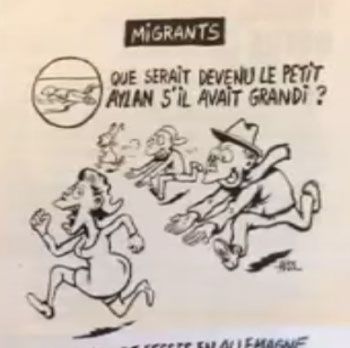 نشریه فکاهی شارلی ابدو فرانسه آیلان کردی کودک کرد سوری را که سال گذشته در سواحل ترکیه به شکل غریبانه ای غرق شده و جسد او به ساحل آمده بود را دست مایه سوژه کاریکاتور خود قرار داده است.به گزارش عصر ایران در جدید ترین شماره این هفته نامه فرانسوی آیلان کردی را در حالی که به دنبال یک زن آلمانی می دود نشان می دهد و در زیر آن نوشته شده است : متجاوز