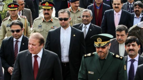 نخست وزیر پاکستان را در سفر به تهران، ژنرال راحیل شریف فرمانده ستاد نیروی زمینی، طارق فاطمی، دستیار ویژه نخست وزیر در امور خارجه، ناصرخان جنجوعا مشاور نخست وزیر در امور امنیتی همراهی می‌کنند.