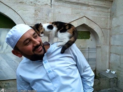 امام جماعت مسجد در حال بازی با گربه