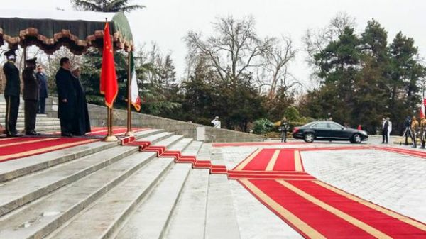 وزیر خارجه ایران در فرودگاه از رئیسجمهوری چین استقبال کردرئیسجمهوری چین قرار است با رهبر ایران و رئیس مجلس این کشور نیز دیدار کند.تلویزیون ایران گفته است که مهمترین اسنادی که قرار است به امضا روسای جمهوری دو کشور برسد، سند راهبردی و توافقنامه مربوط به راه تجاری جاده ابریشم است.