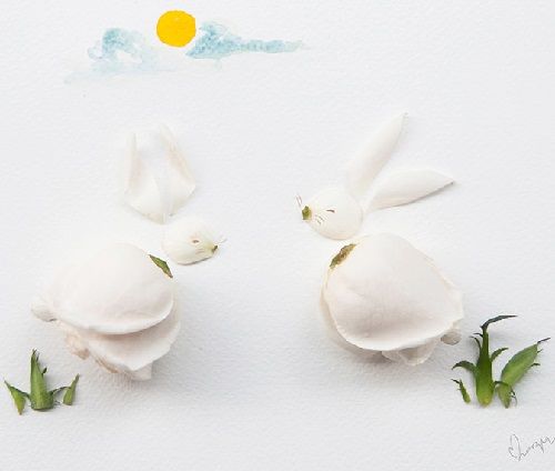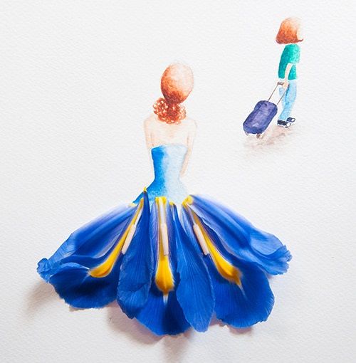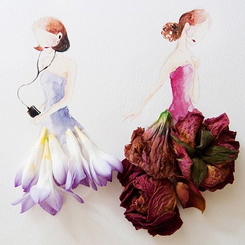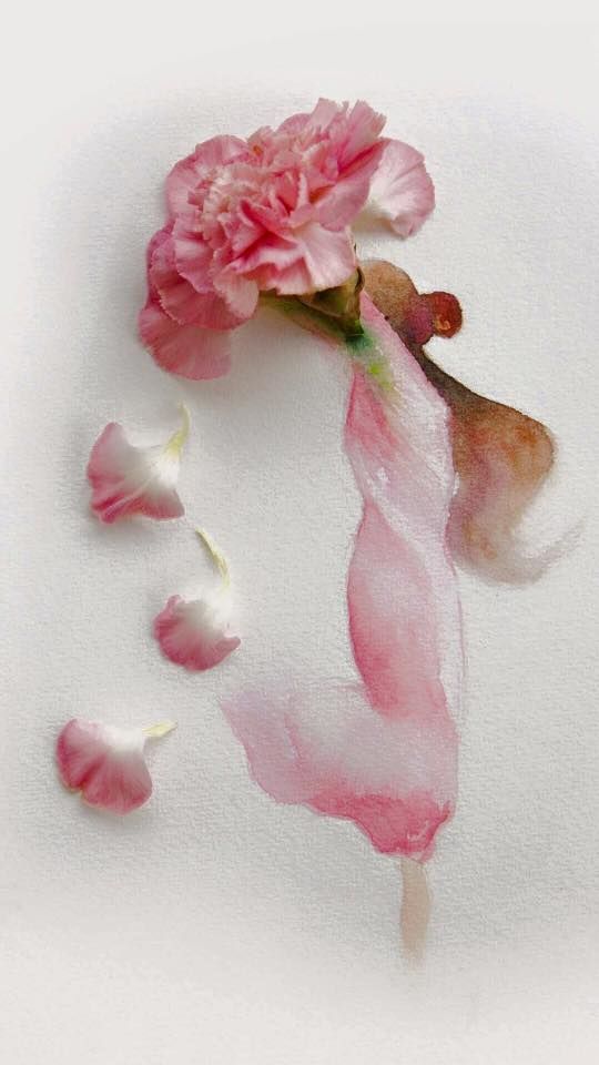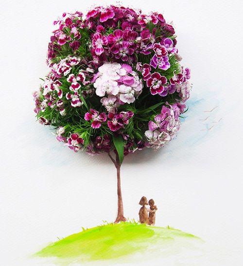 هنر تلفیق نقاشی و گلهای طبیعی زیبا