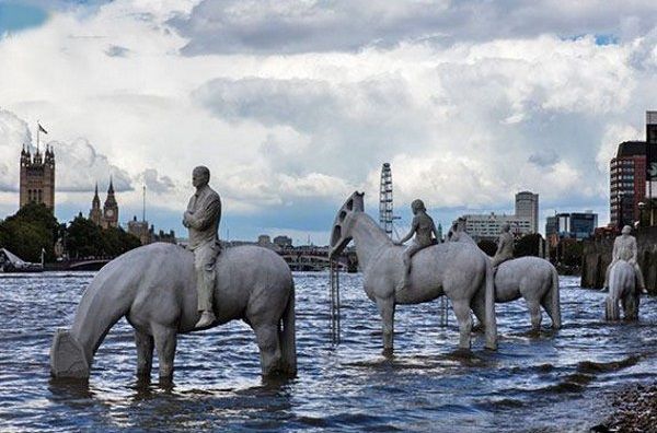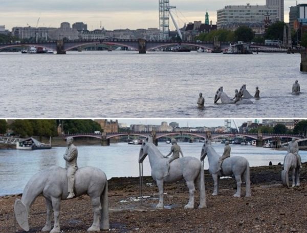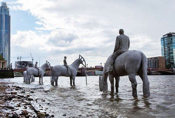 در ماه های سپتامبر مردم وقتی از کنار گوشه ای از خط ساحلی رودخانه تایمز در لندن عبور کنند با ۴ مجسمه مرد های اسب سوار مواجه می شوند. jason decaires taylor، طراح و مجسمه ساز که با ساخت مجسمه هایی در زیر آب به شهرت رسیده، ۴ مجسمه اسب سوار را در مقابل موزه هنر بریتانیا قرار داده است. همراه با حرکت و جزر و مد آب در طول روز دو بار این مجسمه ها پدیدار و پنهان می شوند.