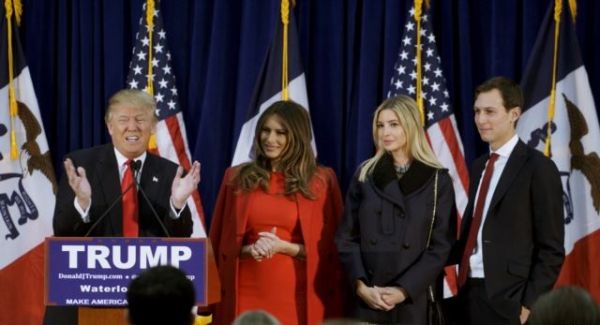 دونالد ترامپ در کنار همسر، دختر و دامادشدونالد ترامپ کمپین رقیب هم حزبی خود تد کروز را به تقلب در جریان رای گیری آیوا متهم کرد.ترامپ کمتر از ۴۸ ساعت پس از شکست در آیوا، خواستار رای گیری دوباره در این ایالت شده است.
