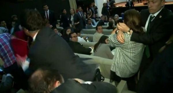 همزمان یک عضو پارلمان اکوادور که د رسالن حضور داشته و تلاش کرده از این زنان در برابر حمله محافظان آقای اردوغان دفاع کند، مجروح شده است.