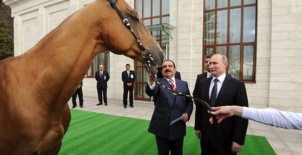 پادشاه بحرین هم در مقابل، یک قبضه شمشیر گران قیمت به پوتین هدیه داد.