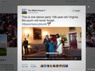 رقص شادی زن ۱۰۶ ساله با اوباما در کاخ سفید.