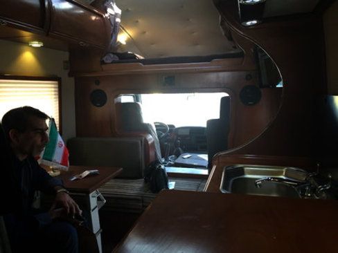 به گفتهی او، صفر تا صد این کاروان را شرکت ایرانی ساخته که امکانات آن شامل حمام، دستشویی، گاز، یخچال، ماکرویو، تلویزیون، ویدئو، آبگرمکن، موتور برقی، فاضلاب و مجهز به سیستم سرمایشی و گرمایشی، جیپیاس، دوربین و سنسور دنده عقب است. تمام بدنه ماشین هم عایق شده است.