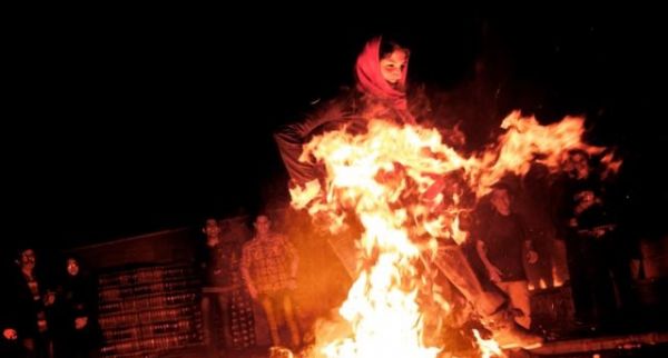 روشن کردن آتش و پریدن از روی آن، از رسوم این آیین است.