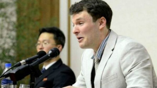 ماه گذشته، اتو وامبیر، که ۲۱ ساله است، در یک نشست خبری در کره شمالی، ضمن اعتراف به گناه خود، گفت که مرتکب جرمی بسیار سنگین شده و افزود که با طرح قبلی به این عمل مبادرت کرد بود.