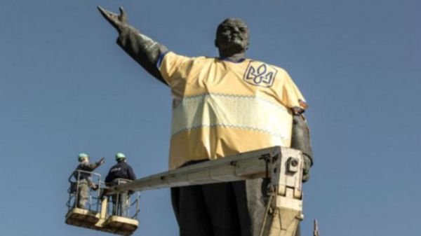 تخریب مجسمه لنین در کیف، پایتخت، در جریان تظاهرات ضد دولتی سال ۲۰۱۳در ماه اکتبر سال ۲۰۱۴، طرفداران حفظ تاریخ دوره کمونیستی اوکراین لباس سنتی این کشور را بر تن مجسمه لنین کردند. رسانه های طرفدار حفظ این مجسمه گفتند که هدف از این اقدام، تاکید بر اوکراینی بودن آثار گذشته این کشور، حتی آثار متعلق به دوره‌ای است که اوکراین بخشی از اتحاد شوروی بود.