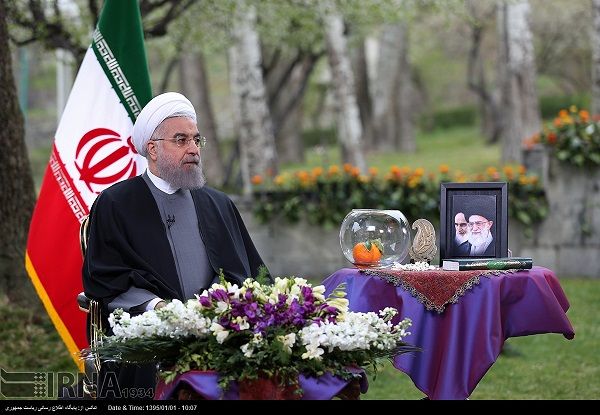در تُنگ میز کنار رئیس جمهور در هنگام پخش پیام نوروزی به جای ماهی قرمز، پرتقال یا نارنج قرار داده شده بود.