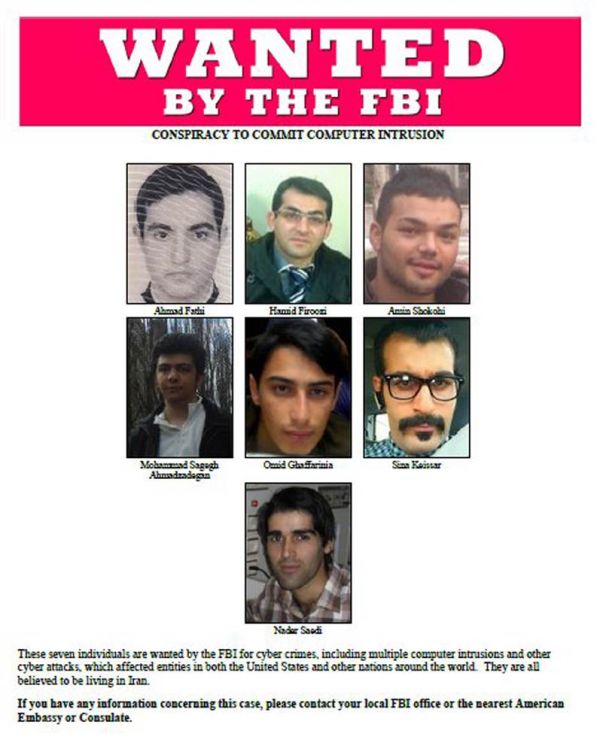 به گزارش ایران خبر آمریکا هفت هکر ایرانی را به جرم نفوذ در سیستم بانکی این کشور مورد پیگرد قضایی قرار داد. بر همین اساس، احمد فاطی، حمید فیروزی، امین شکوهی، محمد صادق احمدزاده، امید قفاریان، سینا کیسر و نادر ساعدی به دلیل آنچه که مقامات آمریکایی حمله به 46 نهاد مالی و سد نیویورک عنوان می‌کنند، مورد پیگرد از طریق FBI قرار گرفتند.
