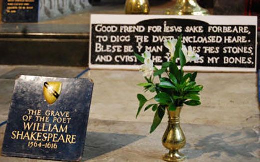 ویلیام شکسپیر دو روز پس از مرگش در سال ۱۶۱۶، در کلیسای مقدس ترینیتی در زادگاهش استراتفورد به خاک سپرده شد.