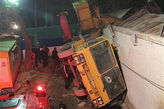 به دنبال تماس مسئولین یک کارگاه ساختمان سازی با سازمان آتش نشانی تهران و اطلاع رسانی این حادثه، ستاد فرماندهی این سازمان بامداد امروز بی درنگ آتش نشانان ایستگاه های 88 و 6 را به همراه گروه امداد و نجات 4 به خیابان ولیعصر(عج)، خیابان فرشته، خیابان توتونچی اعزام کرد.ناصر کیانی افسر آماده منطقه سه عملیات در این باره گفت: در یک قطعه زمین گودبرداری شده به مساحت هزار و 500 متر مربع یک دستگاه جرثقیل 40 تنی مشغول کار بود که به دلیل بی احتیاطی ناگهان واژگون شد و بر روی خانه یک طبقه ای که در مجاورت این محل قرار داشت افتاده بود و اپراتور 34 ساله به طرز خطرناکی بین اتاقک جرثقیل و دیوار گرفتار شده بود.
