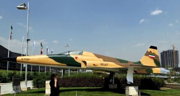 یک هواپیمای آمریکایی اف-۵ در یک نمایشگاه "دفاع مقدس" در تهران به نمایش در آمده استپیشرفته ترین هواپیماهای نظامی ایران عمدتا هواپیماهای آمریکایی خریداری شده در دوران حکومت محمدرضا شاه پهلوی است که نزدیک به ۴۰ سال از پایان عمر آن حکومت می گذرد.
